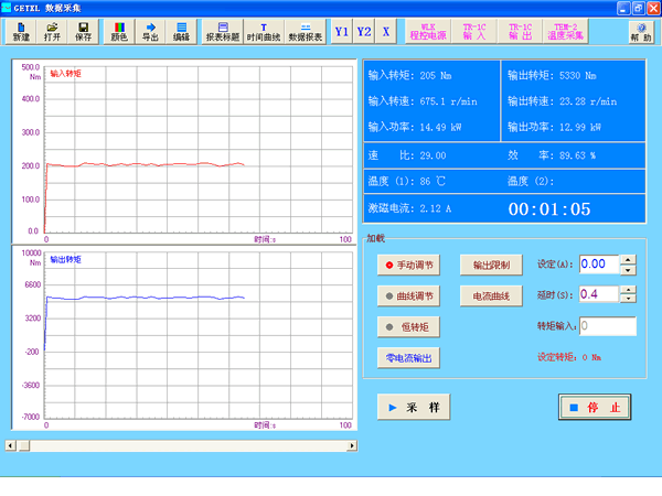 2. 所有儀器通過RS485總線與電腦連接,實現對變速箱的自動加載以及對數據的集中采集。實時顯示各參數與時間之間的關系曲線,以記錄整過測試過程。