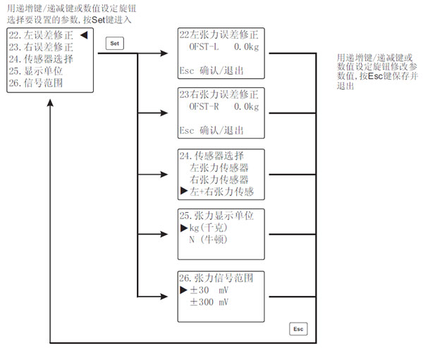 當測量值發(fā)生零點偏移時,如偏移誤差較小,可以對傳感器誤差進行修正,通過修正可以校正零點,所設置的修正值將加到張力顯示值中,如偏移誤差較大,應對控制器進行重新標定。